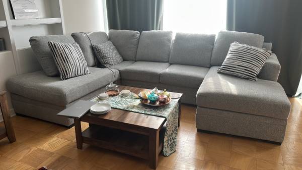 Two-piece sectional with chaise Purchased for $2,000 in February 2024 — less than a year old. In excellent condition and very comfortable. Only selling because it doesn’t fit in my new apartment.