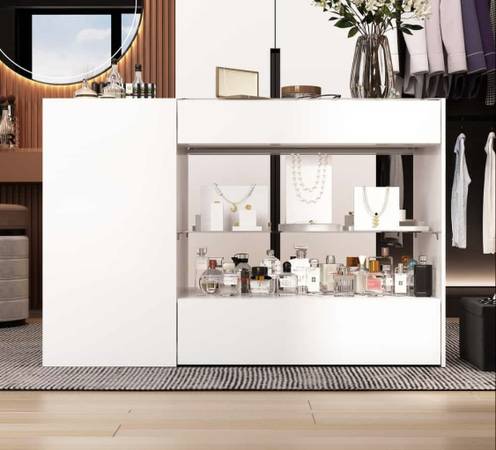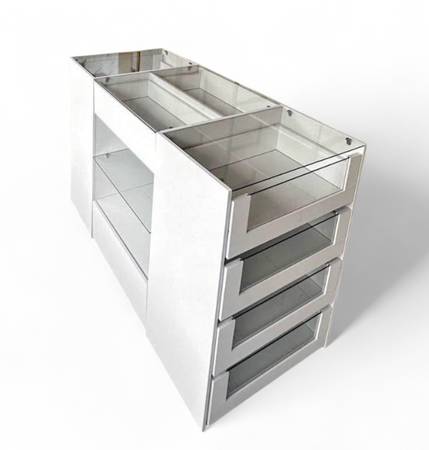 Closet island display dresser Glass top Dimensions in photos Price firm New, Assembled, perfect condition Pick up 22206 Tags: ikea, designer, arhaus, west elm, cb2, crate and barrel