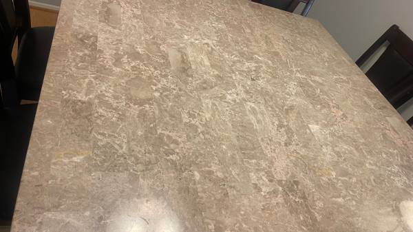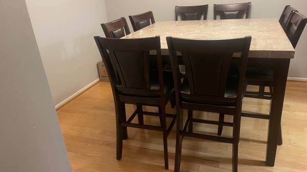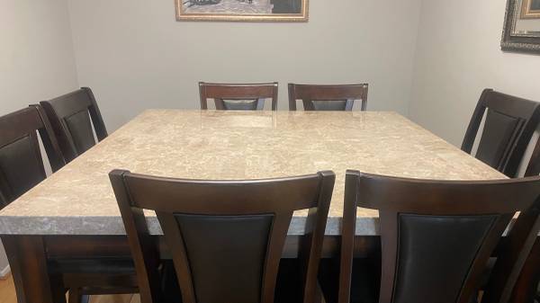 Large marble top dining table with 8 chairs: Table: Coaster Home Furnishings Milton Modern Transitional Real Marble Top Counter Height Dining Table - Cappuccino, bought from Amazon. Chairs: Gurinder...