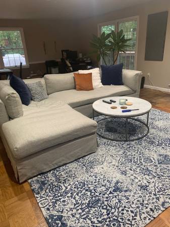 Unfortunately, this couch does not fit in our new house, so we are forced to sell it. The couch was bought new for $2,700 direct from pottery barn. Very little use. No tears or stains. No pets....