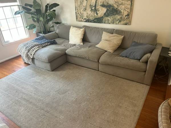 We purchased a comfy sectional couch about 12 months ago and are moving at the end of this month. It's in great condition with no stains and will be vacuumed. Purchased for over $1,500 and willing to accept $750 or best offer. Must be picked up.