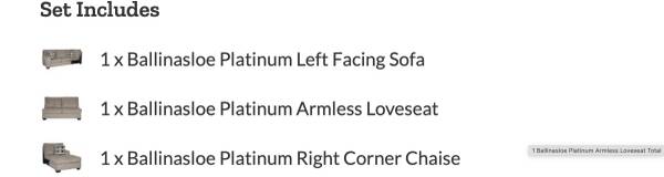 El seccional Ashly Ballinasloe combina un diseño moderno y elegante con calidez y comodidad. Su tapizado "platino" ofrece un tono neutro relajante. Las esquinas ligeramente redondeadas le dan un toque acogedor a su elegante perfil.