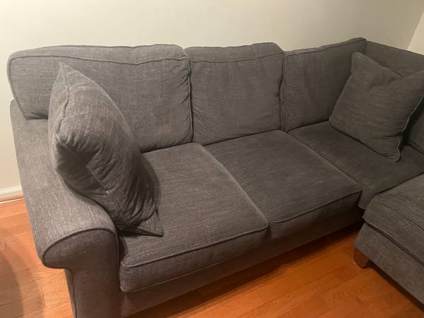 L shaped Right Arm Facing Havertys Grey Couch in Excellent condition, side portion detachable as sectional