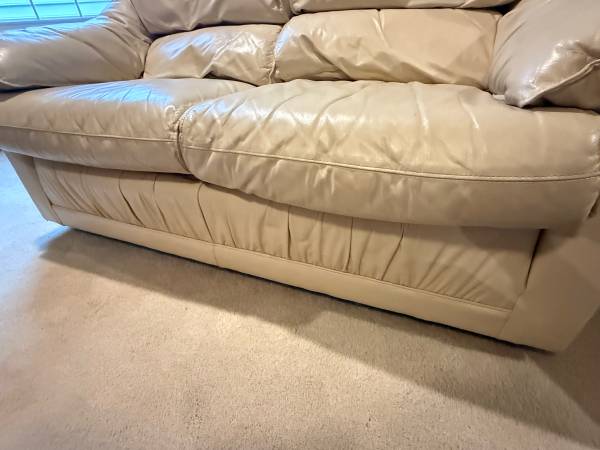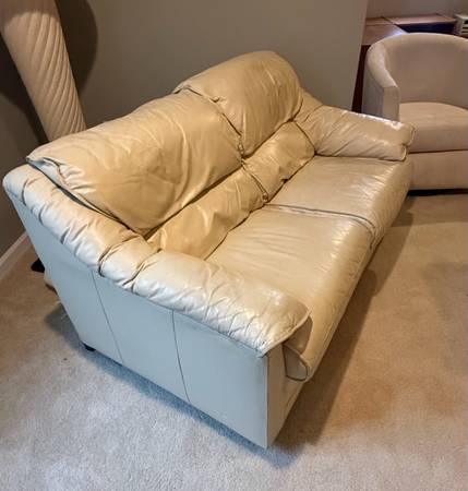 Leathercraft top-grain Italian leather in cream color. Two seats and cushy arm rests. Very comfortable. Looks to be I good condition. See photos. Dimensions: 57”x32”x32” height to back and 17”...