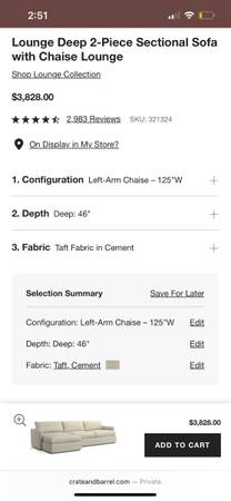Probably one of the most comfortable sofas I have ever owned. Only getting rid of this one because we are purchasing the exact same sofa in a different configuration.