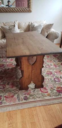Lovely country style table with a trestle base table that has hidden storage and a glass top (not pictured). $300 OBO Cash Only For fastest response please text/call, emails will be responded to...
