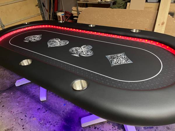 i work with you to design your custom table you select colors for vinyl and cloth and finishes an options. Please note, I’m just a craftsman with a small shop. I do not have tables ready to sell off a floor. My prices are fixed and very reasonable for the quality and are based on materials cost and a nominal craftsman labor rate so I don’t negotiate on price. You can calculate the price of the table with the information below by simply adding each option you choose to the $1600 base price.