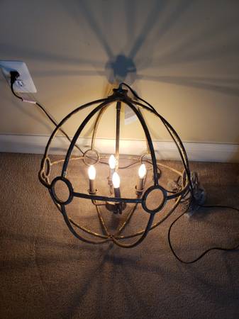 New 4 light chandelier. Long chain for plug in