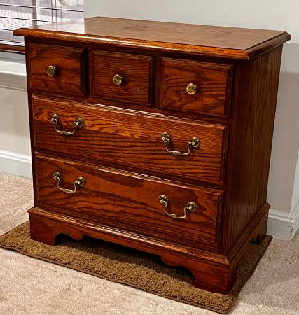 Night Stand - End Table - Solid Oak - 5 Drawers