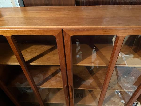 nice teak china top or low bookcase display with glass door cabinet delivery avail for a. small fee - less than what you rent a uhaul *************48" wide x 12 deep x 45"h midcentury modern teak...