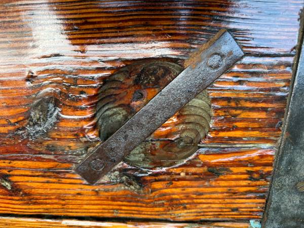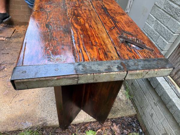 Antique farmhouse rustic style WWII Liberty Ship Hatch Cover top Solid wood frame, 3 parts Top is very heavy , converted from US Navy WWII Liberty Ship Hatch Cover Pick up local or delivery with...