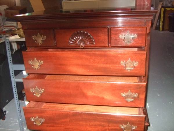 Solid mahogany Chippendale-style dresser. Excellent condition. Dimensions: Width 36", depth 20", height 59". $275