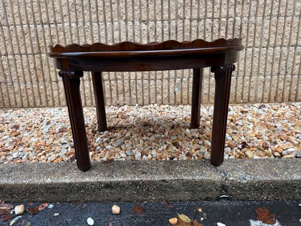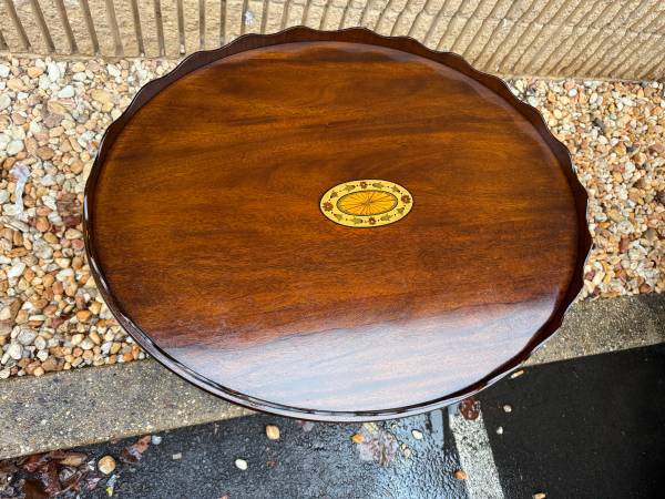 George III Style Oval Scalloped Inlaid Mahogany Cocktail-Coffee Table Great condition