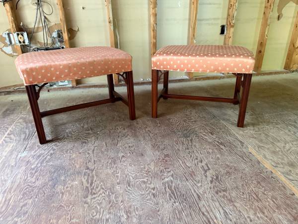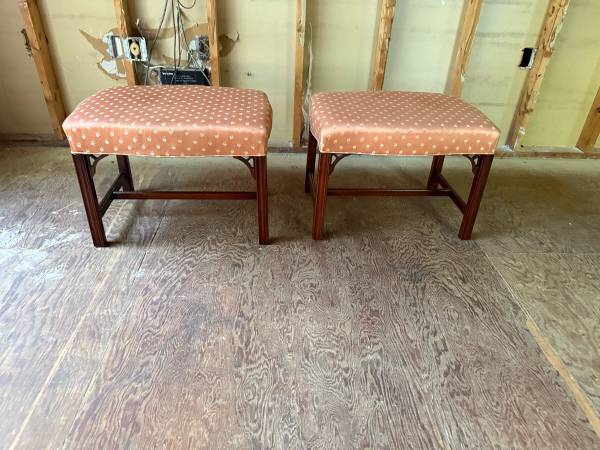 Pair of SOUTH HICKORY CHAIR CHIPPENDALE STYLE MAHOGANY STOOLS Sturdy and strong