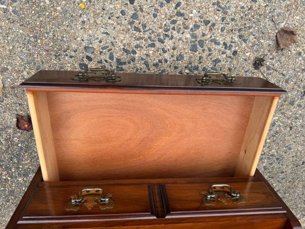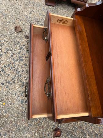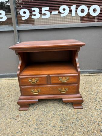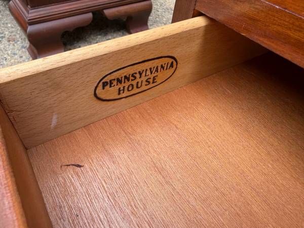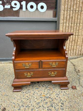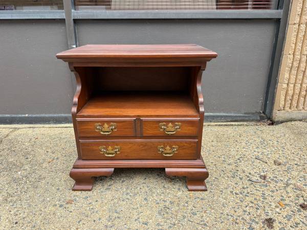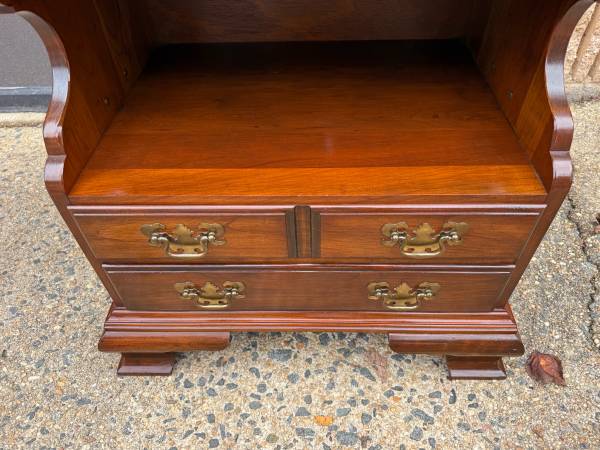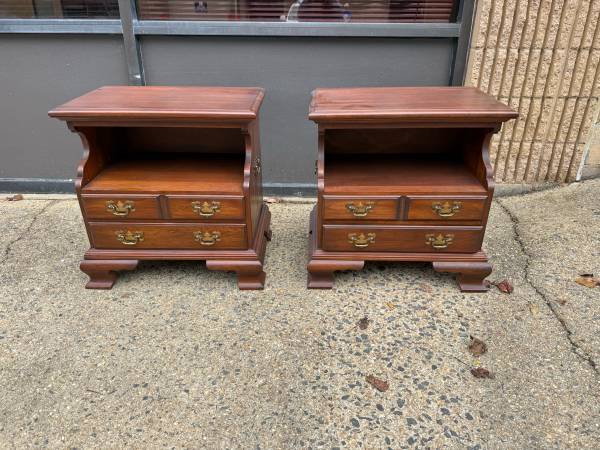 Pair of Pennsylvania House Chippendale Style 2Tier Nightstands Bedside Cabinets Side Tables. Solid wood frame, brass hardware, dovetail joint construction 2 drawers move smoothly Approximate...