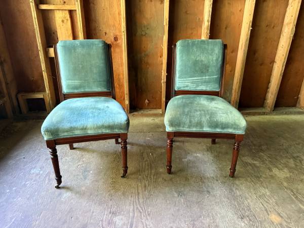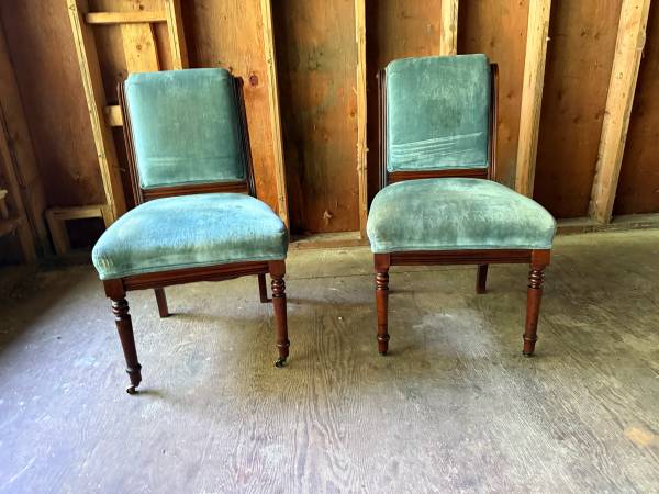 Pair of Vixtorian Eastlake style slippery chairs Sturdy and strong, scrolled back, turned legs Pick up local or delivery with extra fee