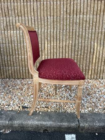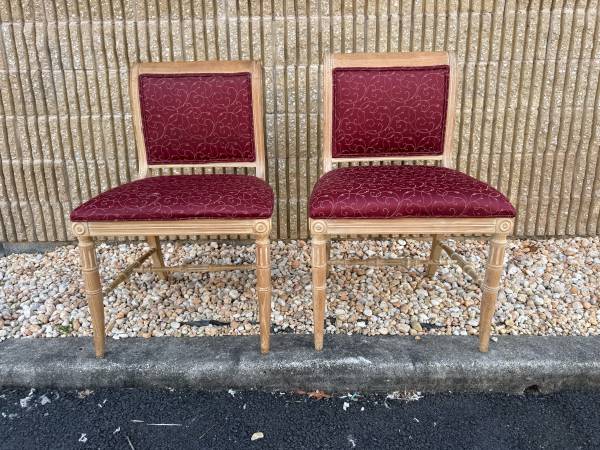 Set of 4 Louis XVI style dining chairs It features a square-shaped back , molded and carved natural wood chairs, resting on four tapered and fluted legs Sturdy
