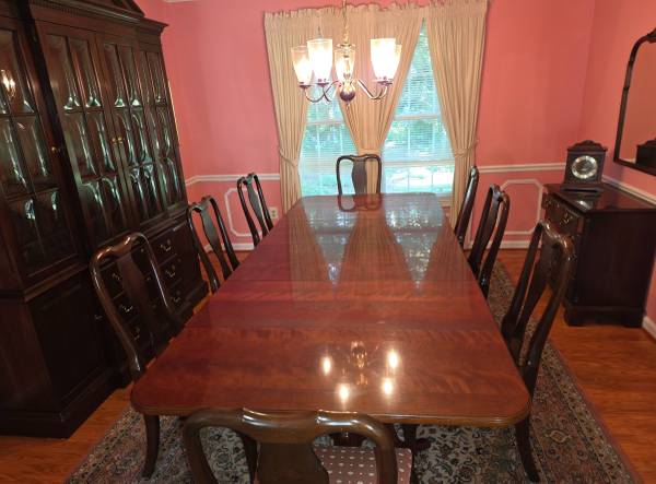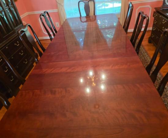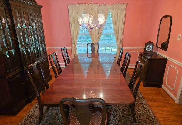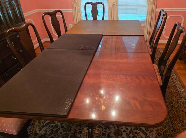 Table: 44" wide x 86" (with 1 20" leaf, or 66" with no leaves, or 106" with both leaves) x 29.5" tall