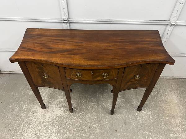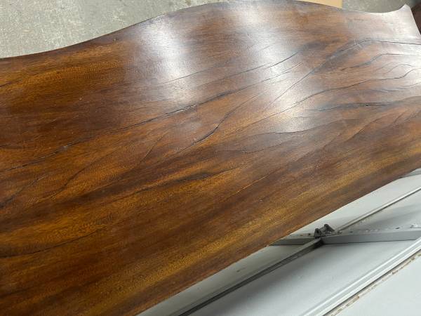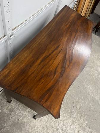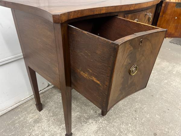 Drawer joints are hand cut dovetails - drawers slide well. Comes with a key that works all locks, middle drawer lock does not operate smoothly. Top surface is solid wood. Drawer fronts are veneered. Natural cracking to wood on top surface