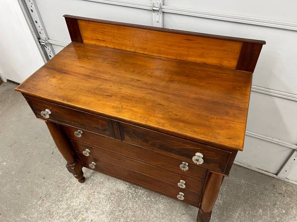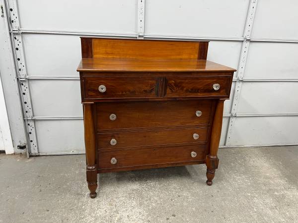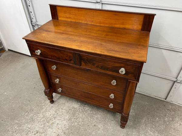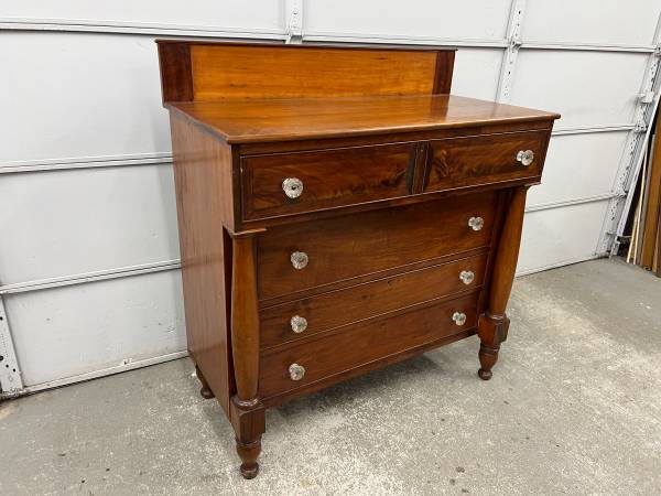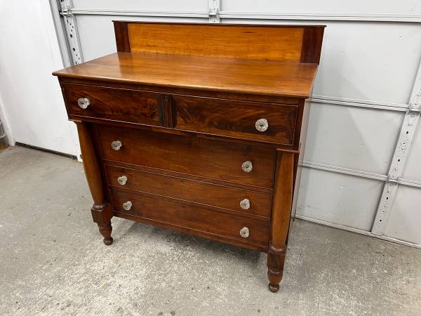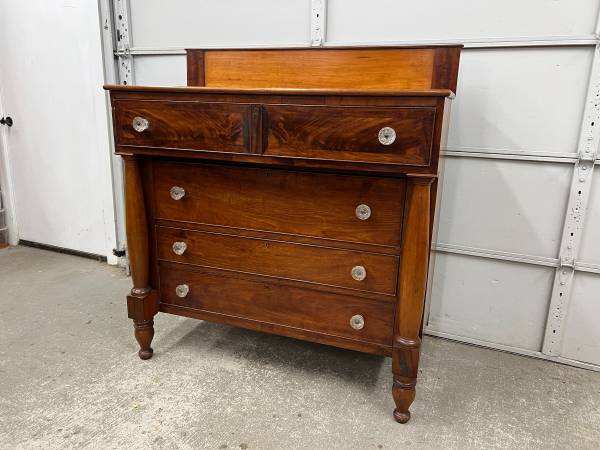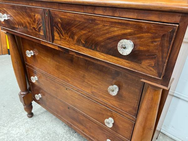 Well built and very sturdy. Glass knobs are old but likely not original. Drawers are hand cut dovetails. Drawers slide well. Does not come with a key - drawers cannot be locked.