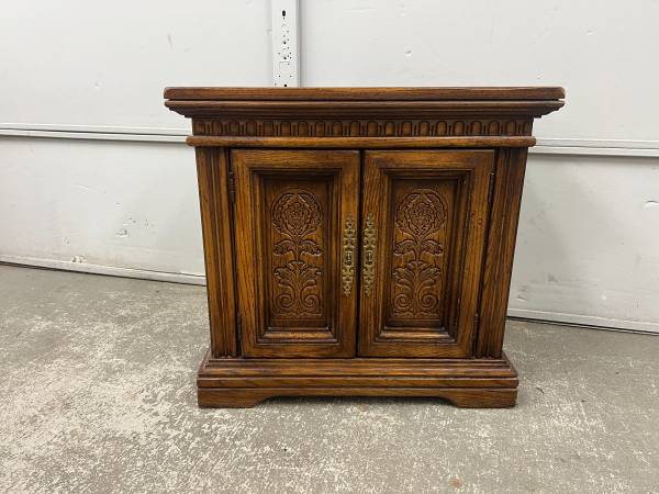 24" tall 25.5" wide 16" deep Made of solid wood and sturdy. Inside drawer slides well. Matching large dresser also available. Check out my other listings!