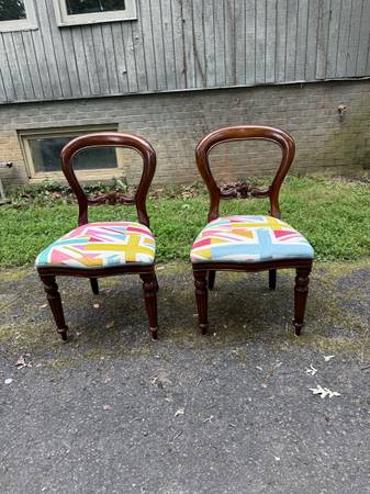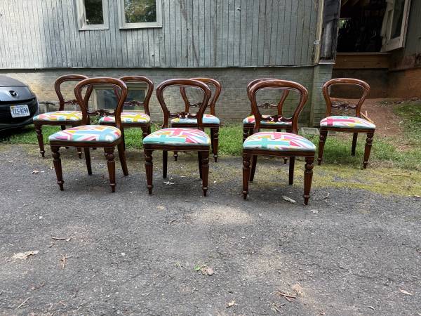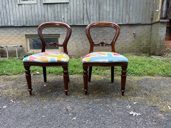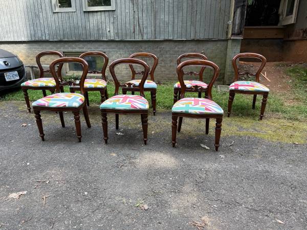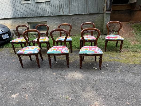 Victorian style balloon back dining chairs Solid wood frame, made in England Sturdy and strong Pick up local or delivery with extra fee