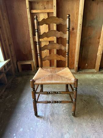 Vintage high ladder back dining chairs Good condition with its age Sturdy and strong