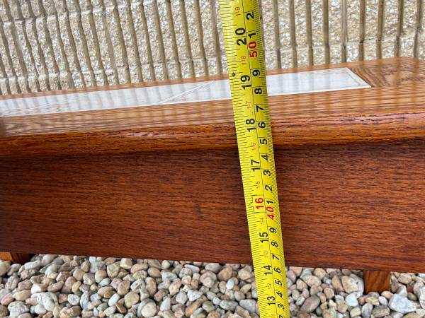 Vintage Oak Coffee table Bench with Floral Tiles Solid wood frame, sturdy and strong