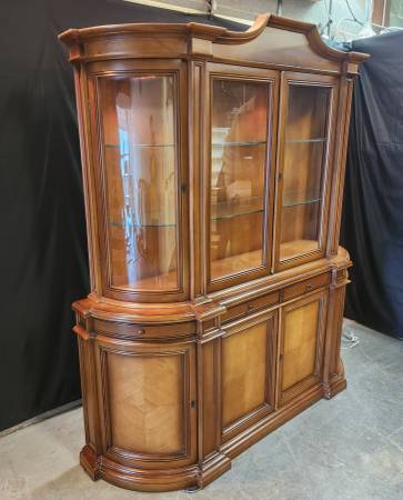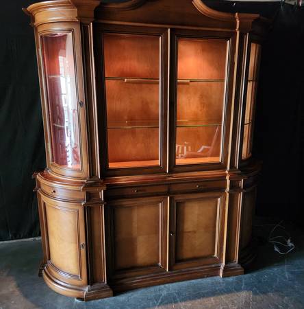 In very goods shape. Minor scratches here and there do not detract from overall excellent impression and functionality of this cabinet. Please see this video inspection: https://youtu.be/2eEtIkcsx4o