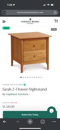 Beautiful Copeland 2-Drawer Nightstand in natural cherry. Handmade in Vermont from sustainably harvested solid wood with dovetail joinery. Original retail $1,450 — Incredible quality and...