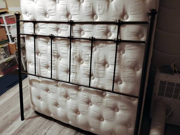 Queen Bed Frame ($160) - New Includes headboard, footboard, and rails. All hardware included including rail supports not shown in photos. Delivery is available to a limited area.