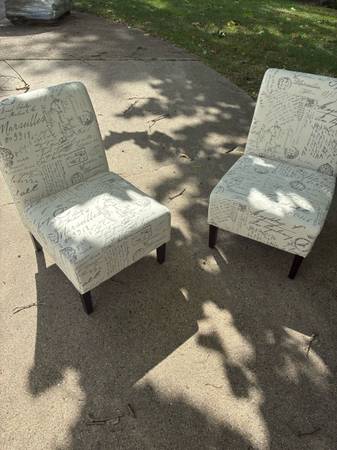 2 chairs white with gray patterns, small, comfortable and good condition