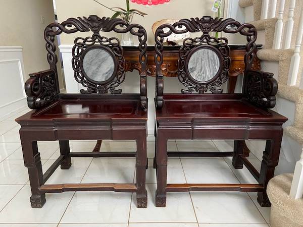 Two very old (Antique?) Chinese Black Wood Chairs