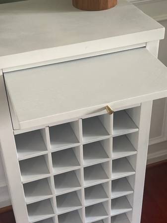 **28-Bottle White Freestanding Wine Rack with Storage Drawer and Pull out Prep. Top**Good Condition...Comes from a Pet and Smoke Free Home..Dim..36'' Tall...18'' Wide...14''Deep.
