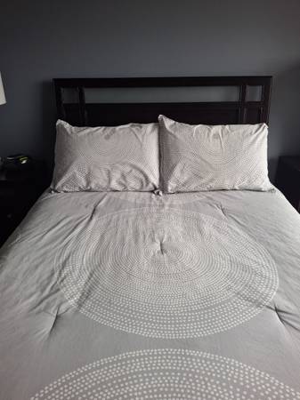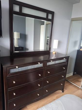 3 PC Bedroom set. $525, Dresser and mirror, standup dresser, and a queen bedframe. You can have the boxspring and mattress they are in good shape. Clean! This is a nice bedroom set. Will consider selling the pieces separately. Individual pieces Dresser and mirror $250, Stand up dresser $200, Queen bedframe $125 (includes Boxspring and mattress)