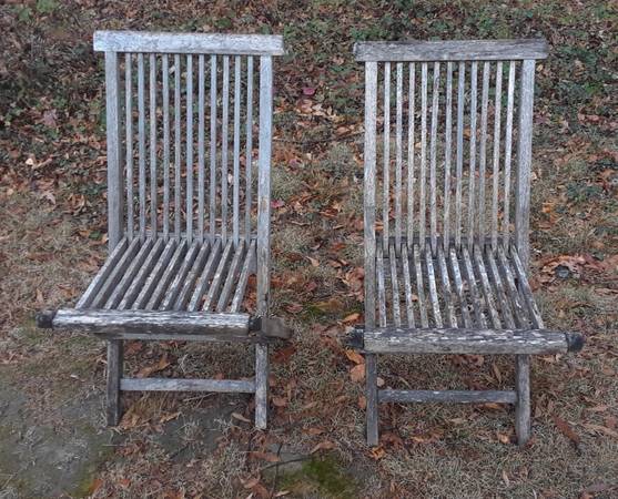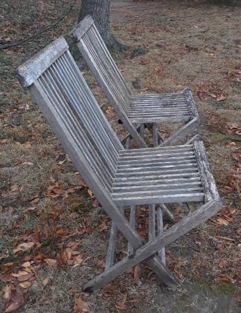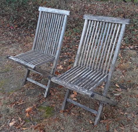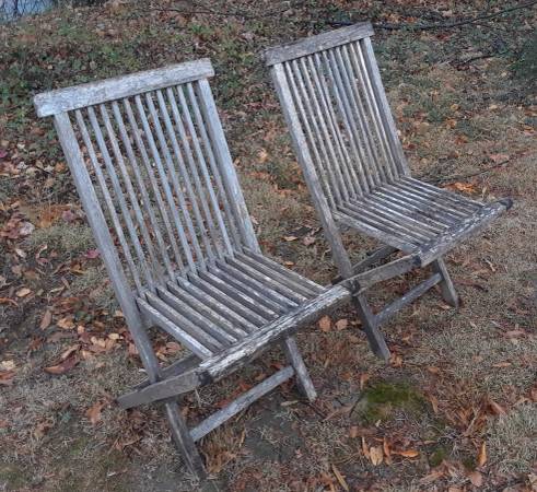 Pair of folding outdoor chairs, good condition overall, finish is weathered, $15 for BOTH. Pickup in Potowmack Crossing condo complex, 1716 West Abingdon Drive, Alexandria VA 22314.