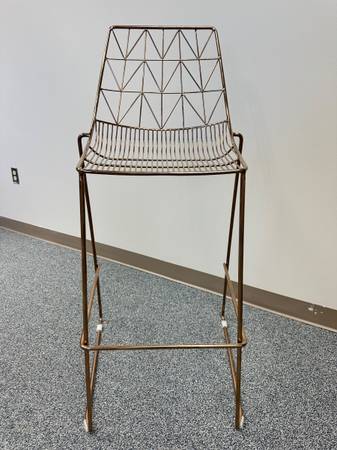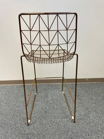 Attractive, modern / contemporary copper finished counter stools with a geometric patterned back.