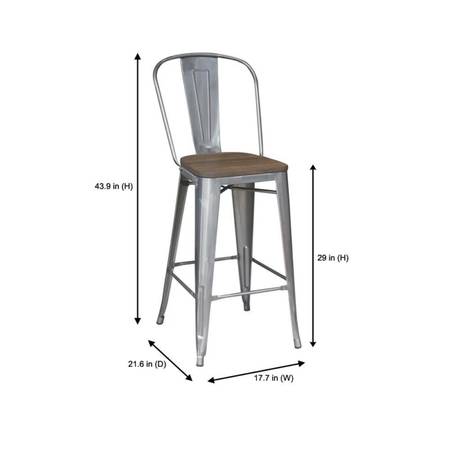 Update your kitchen or bar area with the 29 in. Gunmetal Counter Stool. This item includes modern metal counter stools that are tough and sturdy enough to handle daily wear and tear while remaining comfortable, functional and stylish. The combination of the metal frame and wood seat brings industrial-chic style to any living space.
