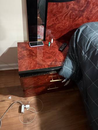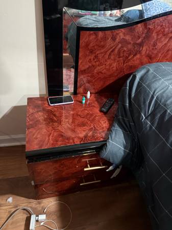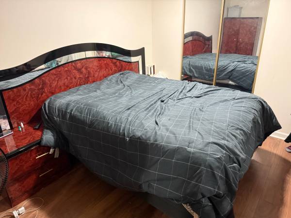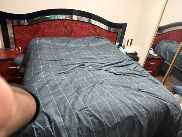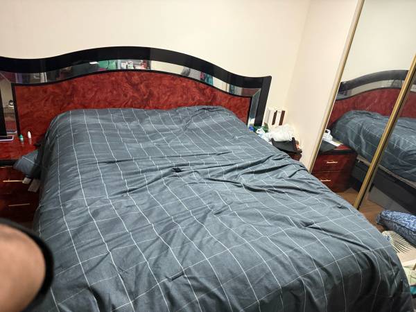 Wooden bed with 2 side table. With mattress too. In great condition