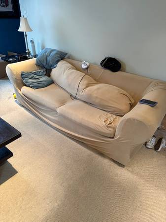 Getting rid of my two couches One couch has a pull out bed. The love seat needs repair, but you can still sit on it. The couches were in a no smoke or pet home, so they don’t smell or have hair. The couches are over 20 yrs old and definitely show their age. You’ll need a pick up or a trailer.