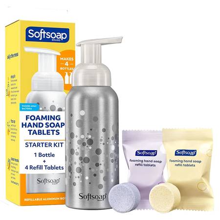 Softsoap Foaming Hand Soap Tablets Starter Kit with Aluminum Bottle Pump and 4 Refill Tablets, Lemon Fizz & Sparkling Lavender