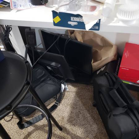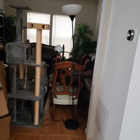Standing Table: $20, Standing tool: $5, working chair: $10, TV table: $10, Book-shelf: $25, working refrigerator: $50, Ikea Sofa: $50, Dining table with 4 chairs: $100, Elliptical: $100, Rower: $50, Cat tree:$50, Cat bed:$5, Uninstalled grill machine in box:$100, Two bikes: $100. Just make an offer and bring your vehicle.