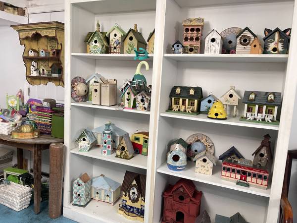 Décor-enough décor for 50 houses! 100’s of framed prints/posters/art, much with an art deco flair, shells, marble eggs, glass fruit and flowers, stone fruit, very large collection of nice silver plate, some art deco silverplate, art deco airplane teapot, collections of décor depicting bunnies, cats, monkeys, birds, ducks, chickens, and lemons, nice area rugs, needlepoint area rugs, decorative glass, 2 nice vintage stained glass windows, modern day stained glass art pieces, very large decorative bird house collection, LOTS of lamps (way more lamps then we have ever had in 1 house!), 2 Tiffany style shades, light fixtures, 5 decorative fireplace screens, many new rolls of wallpaper, Galileo thermometers, hour glass, Asian fish bowls and other Asian decor, blue and white ceramic décor, baskets, figurines, music boxes, decorative signs, beachy décor, miniatures, large vintage alabaster lamps, art deco mirrors, décor and light fixtures, large Franz vase, many decorative pillars, set of full size vintage wooden pillars, many clocks, fancy antique clocks, large Remington style bronze, large ceramic horse statue with base, candles, many mirrors, hat boxes, wooden boxes, vanity mirrors, lots of decorative tassels, decorative dress form, decorative straw mannequins, many small decorative shelves, geodes and geode slices, wicker birdcage (modern day), Murano glass,