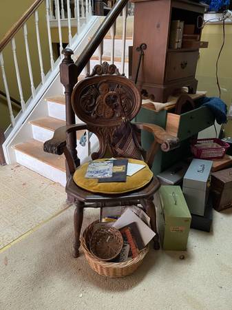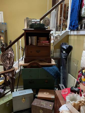 9-3 , furniture, 80’s pingpong table , Japanese kamono and furniture. Vintage hats , clothes and sewing fabric . Quilts and blankets , vinyl records, antique books , artist frames and tools . Lots...