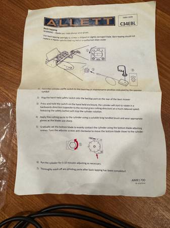 Brand new. Outer casing was damaged from heat or shipping, but controller was checked and works perfectly. Only the outer plastic case is deformed a bit. This is used to backlap a compatible Allett reel mower (for example the C27E or the C34E.