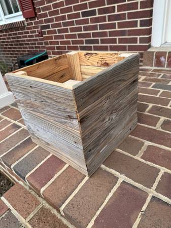 Made to order from reclaimed exterior wood. This one measures 14” by 14”by 14” Glad to build to your dimensions.