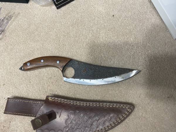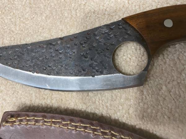 This knife draws inspiration from authentic Serbian cleavers and Huusk-style blades, known for their curved profiles and iconic finger-hole design. While many budget versions flood the market, this piece stands apart with its hand-forged construction, balanced weight, and display-worthy finish. It’s a tool built for the trail — and a story worth telling.