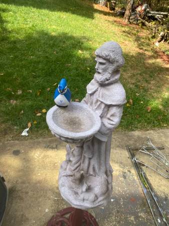 Add a calming, spiritual touch to your outdoor space with this beautifully crafted St. Francis of Assisi garden statue, featuring a birdbath or feeder held in his hands and a playful blue jay perched on the side (added for color and charm). Honoring the patron saint of animals and the environment, this statue blends religious symbolism with practical bird-friendly design.