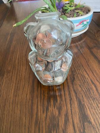 🧸 Vintage Anchor Hocking Clear Glass Teddy Bear Coin Bank – 6" – Full - $30 (Centreville)