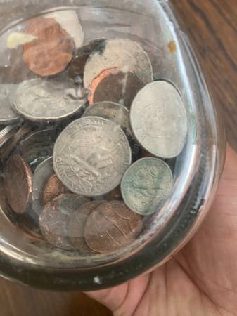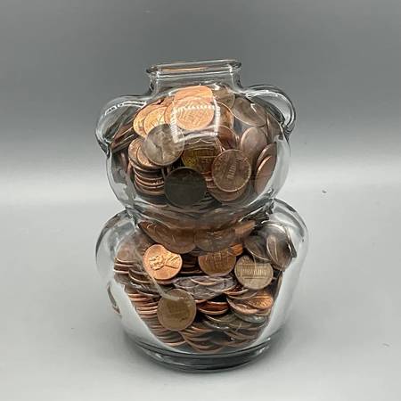 Add a touch of nostalgia to your collection with this adorable vintage teddy bear piggy bank from Anchor Hocking. Crafted from thick, clear glass in the 1970s, this charming bear stands 6 inches tall and is filled with pennies and a few other coins—ready to bring a smile and maybe a little savings too!